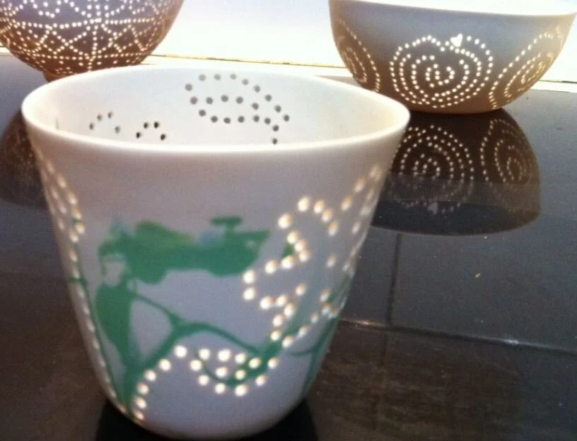 More pieces I made with Julie Shepherd at McGregor! Pierced slipcast Limoges porcelain 1260 deg gifted